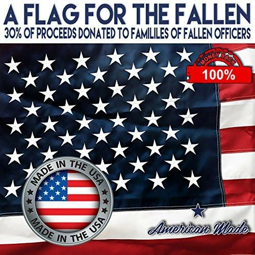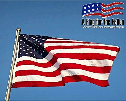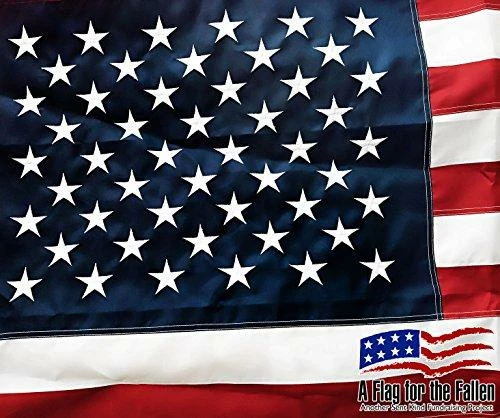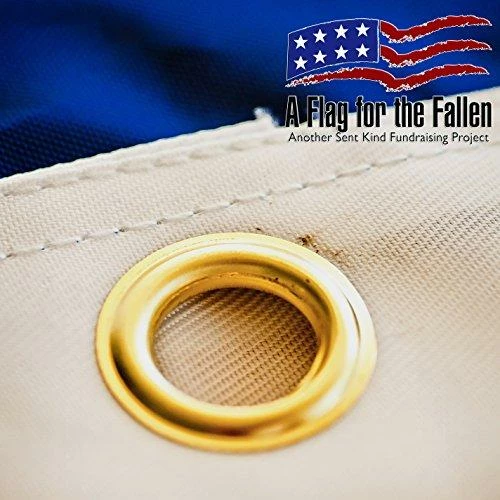 30% of proceeds from flag and sticker are donated to families of fallen service men and women. I am a full time teacher and this fundraiser is for these special families. I offer a BETTER THAN 100% GUARANTEE: You may return your flag at any time for a full refund, no questions asked. Our flags boast Nylon 240-D (similar to 200 denier nylon), ideal for outdoor use and indoor display as it sheds water well and maintains its bright appearance over time. They fly well in slight breezes and are ideal for low wind areas. All 50 Stars are embroidered. We use proprietary CSTEP-2 brass grommets to add a professional touch and lasting quality, measuring a bit larger (anvil drive punch #3777-14). The U. S. Government generally expects nylon flags to last 90 days, based on daily usage from sunrise to sunset. Our tests have shown that in most cases our flags, with their unique design elements, will last 4 times as long, especially when properly cared for (remember that no matter how well it is constructed, a flag is only a piece of cloth and will sooner or later succumb to the elements). Our flags are sewn with with 2 rows of stitching per seam and 4 rows of stitching on the fly end, using lock stitches to prevent unraveling. And each of our flags are bundled to include an extra gift as well: An official “Flag for the Fallen” sticker for each customer. If, by chance, your flag experiences premature wear (common to about 3% of all orders), I will personally replace your flag, no questions asked (life is just too short to not take care of people). Simply stated, it’s a win-win: supporting families who have lost loved ones and also bolstering the local economy.