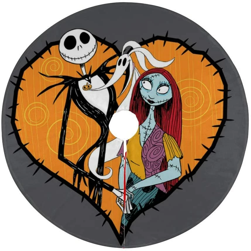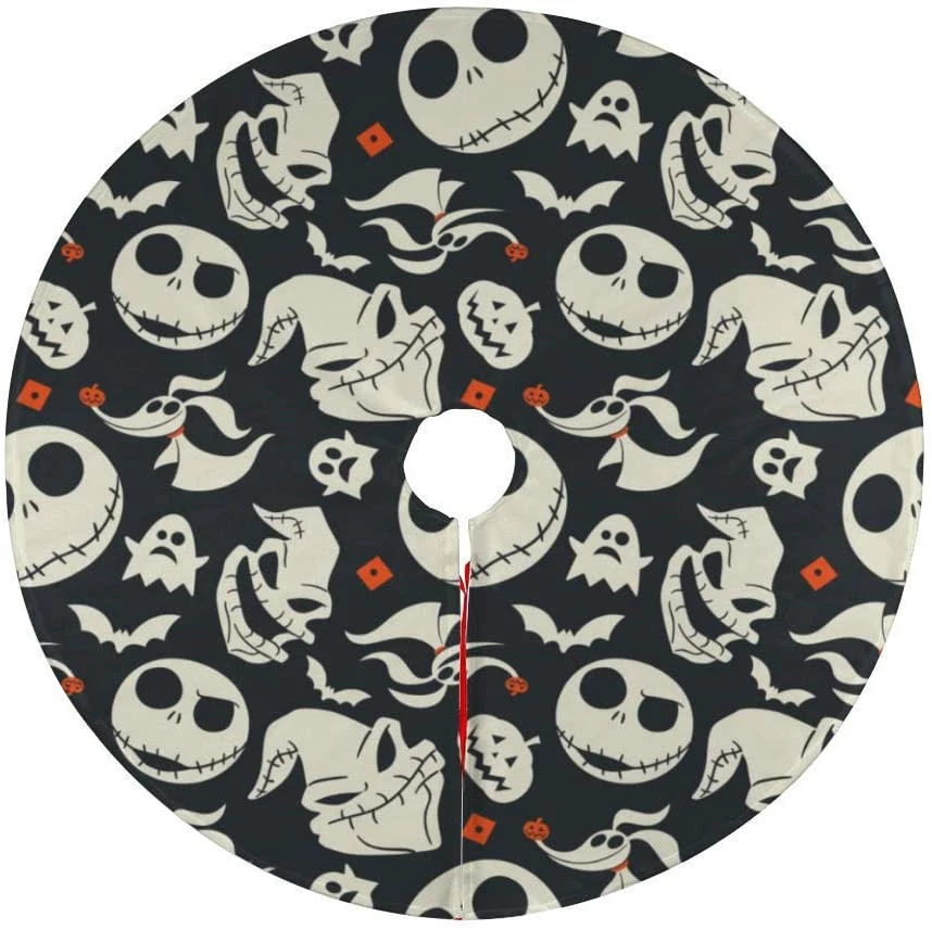 Up for sale is a delightful addition to your holiday decor made personally by me. It’s a tree skirt to go beneath your tree. It’s 47″ in diameter with the top of 100% cotton with a background of orange covered with black haunted houses, trees, headstones and bats and white ghosts. There’s a 3″ black satin ruffle around the outer edge.