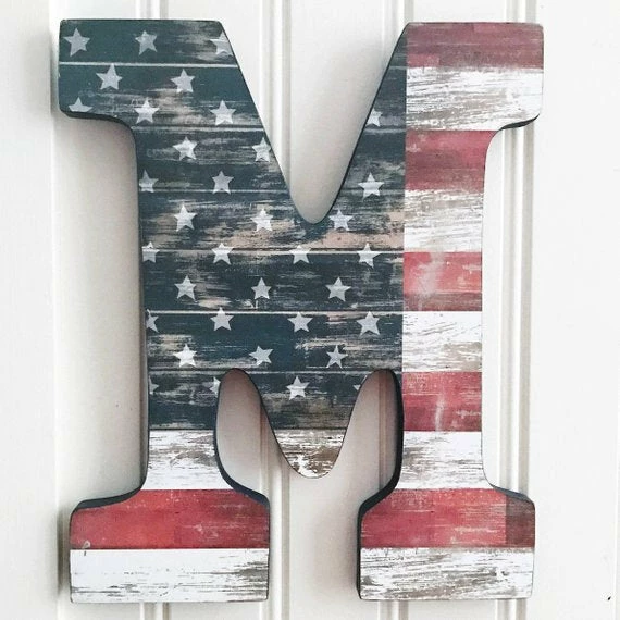9” Patriotic Rustic American Flag Letter. Great Father’s Day Gift, Living Room Letter or for a man cave. Also great for a dorm room wall.