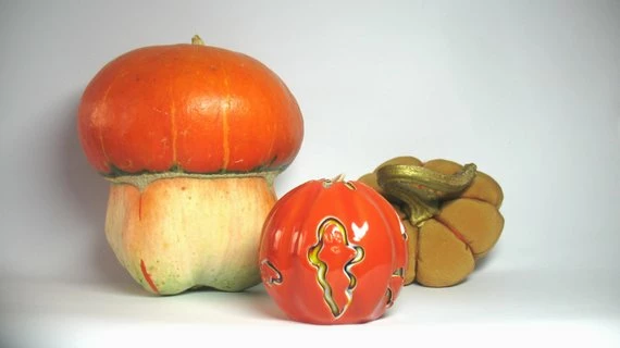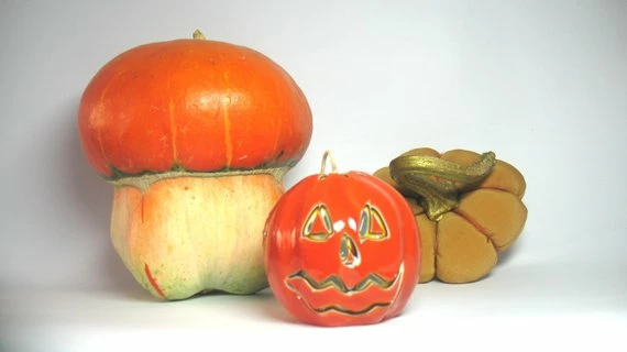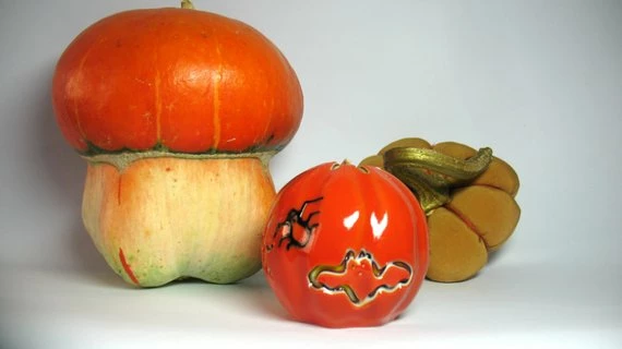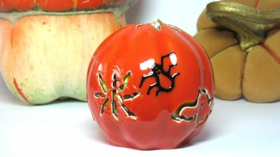 Orange brown, black, Carved candle, Candles pumpkin, gift unique, gift for Halloween, spider on candles.