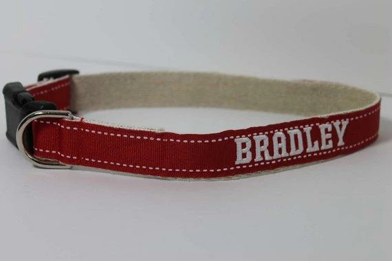 Bradley University fans and alumni will love this collar featuring team colors and logos. This environmentally friendly hand-made dog collar is the perfect accessory for your best friend.