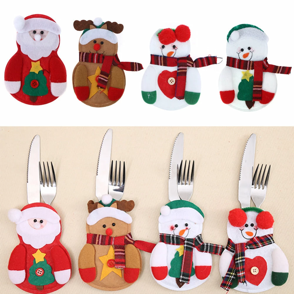 Common Truth 1 PC Santa Claus Snowman Elk Style Utensil Knives Forks Holder Cutlery Bag Pouch Christmas New Year Decor Tableware Supplies Christmas Home Decor