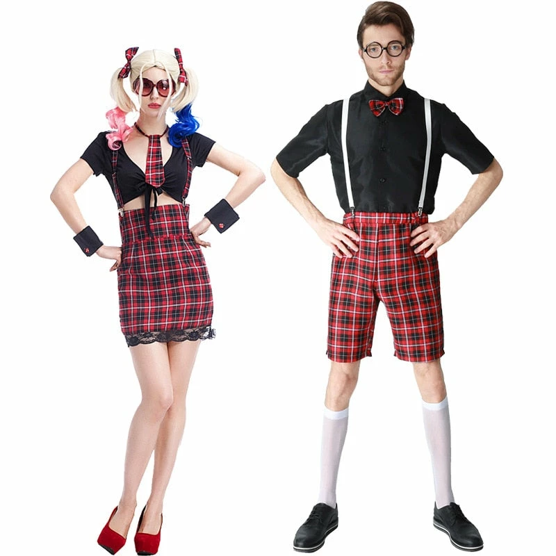 D & A Factory Store Girl Boy Couple School Uniform Class Service Sailor Suits Sexy Girls Halloween Party Cosplay Costume England Dress Couple Halloween Costume