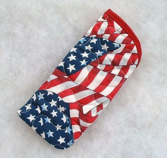 This sunglass/eyeglass case was made from 100% pre-washed cotton fabric, a thick layer of polyester batting and muslin cotton lining.