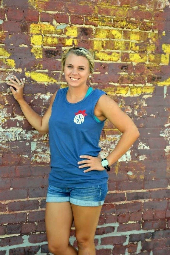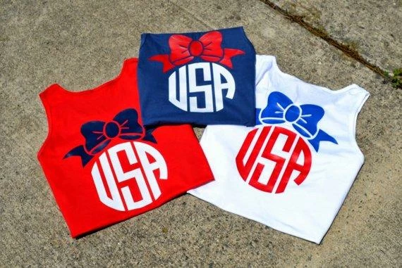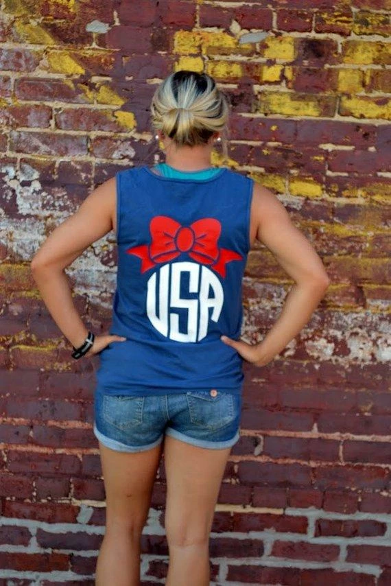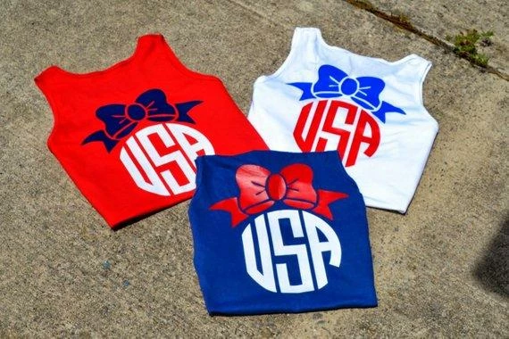 **TANKS SHOWN ARE TRUE NAVY WITH RED BOW & WHITE USA, RED WITH NAVY BOW AND WHITE USA, OR WHITE WITH ROYAL BOW AND RED USA **