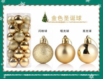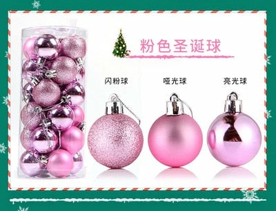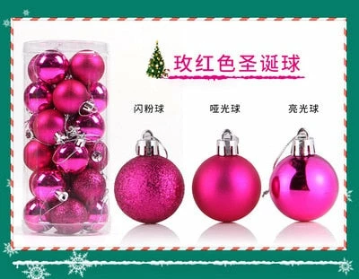 ETya Shop Store 24 Pcs/Set Glitter Chic Christmas Tree Ball Baubles Xmas Party Wedding Hanging Ornament Christmas Decoration For Home Market