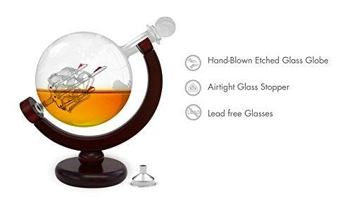 - ✔ A WORK OF ART, A CONVERSATION STARTER: Each decanter is a skilled artisan’s handblown masterpiece, with a custom designed ship on the inside. Take a trip around the world, as you rotate the globe on its axis. Adds that touch of class to your living or bar décor and is guaranteed to start a conversation!