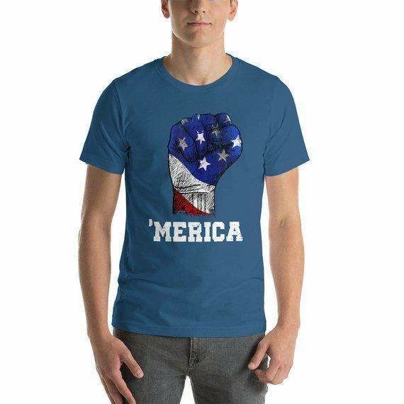 ‘Merica Fist American Flag T Shirt Is Designed and printed in different sizes for Men, Women and Kids. This tee shirt is perfect for Military Veterans, Patriotic day shirt, Memorial day. Ideal Funny Design for Grandpa, Dad, Childrens,Husband or Wife.