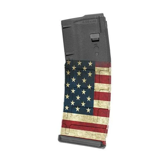 GunSkins AR-15 Mag Skins are designed to fit 30-round 5.56 x 45 NATO (.223 Remington) AR15/M4 compatible magazines. The kit includes pieces for the left and right side of three magazines.