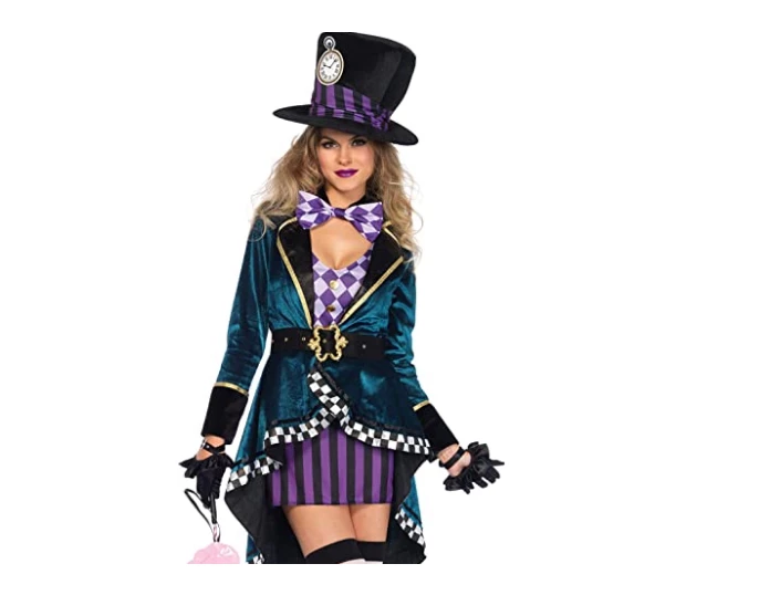 Checkout sexy Alice in Wonderland costume for Halloween party having Stretch knit dress portion has elastic at the waist, decorative buttons, back zipper. Buy now!