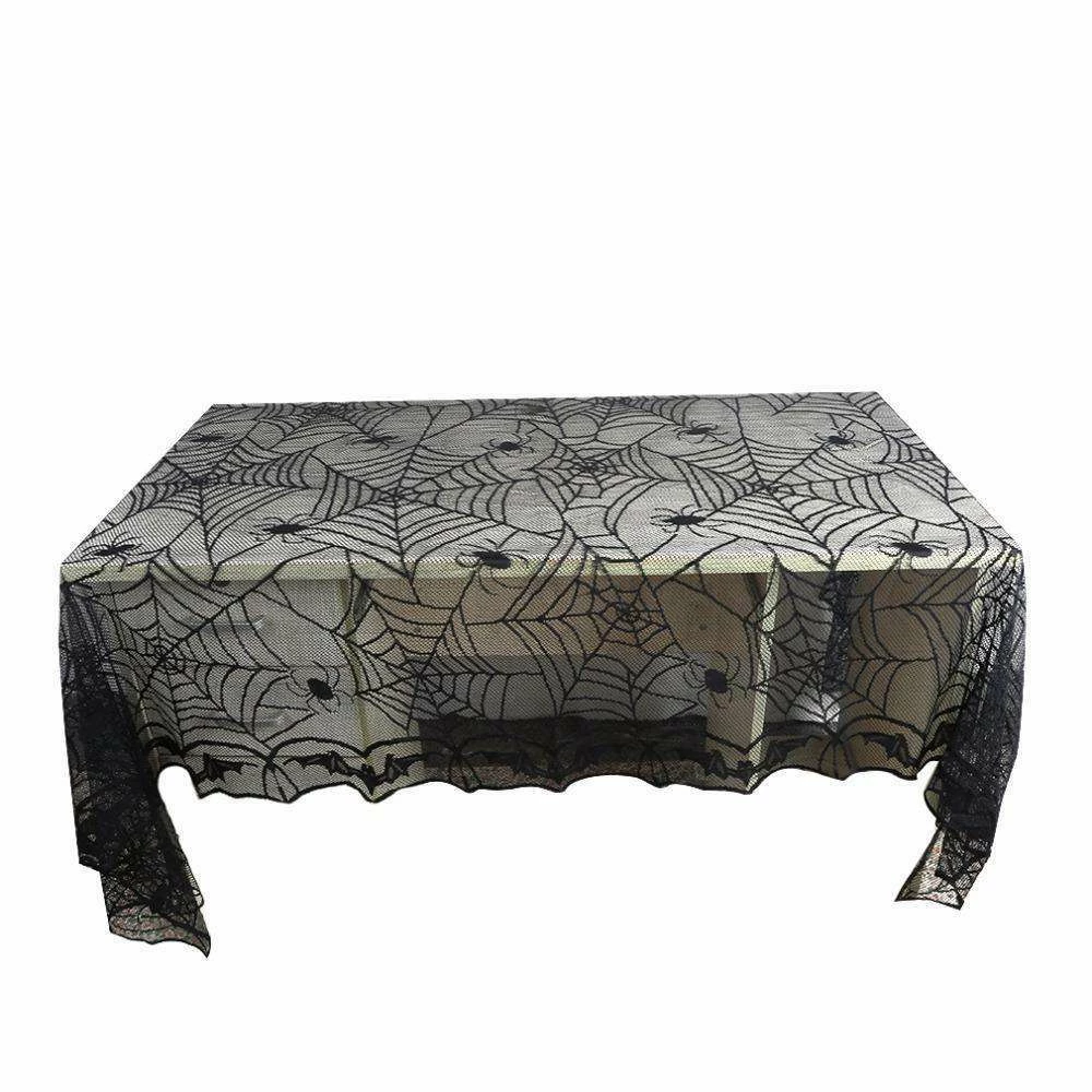 Happiness Life Store Halloween Decorations 1 Pcs Lace Black Spider Web Halloween Tablecloth Tablecover Rectangle 240*120 Cm Halloween Decoration Decor Props