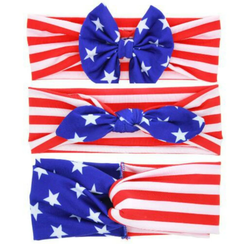 Headband Accessories Store 2018 New 1PCS America Rabbit Ears 4th Of July Flag Elastic Bow Headband Twist Turban For Kids Girls Head Band Hair Accessories