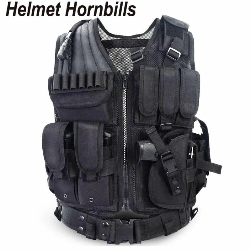 Helmet Hornbills Official Store Military Clothing & Accessories Helmet Hornbills Police Tactical Vest Outdoor Camouflage Military Sports Wear Hunting Vest Army Swat Molle Vest Black