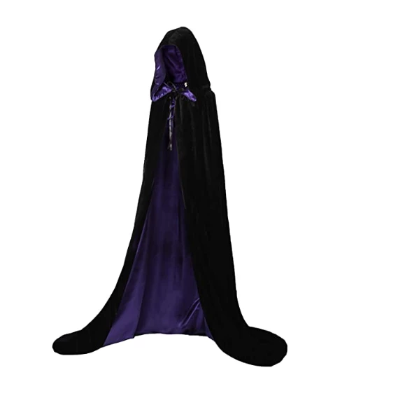Shop velvet witch cloak hooded Halloween costumes in different colors having outer material Deluxe velvet and Inner satin.
