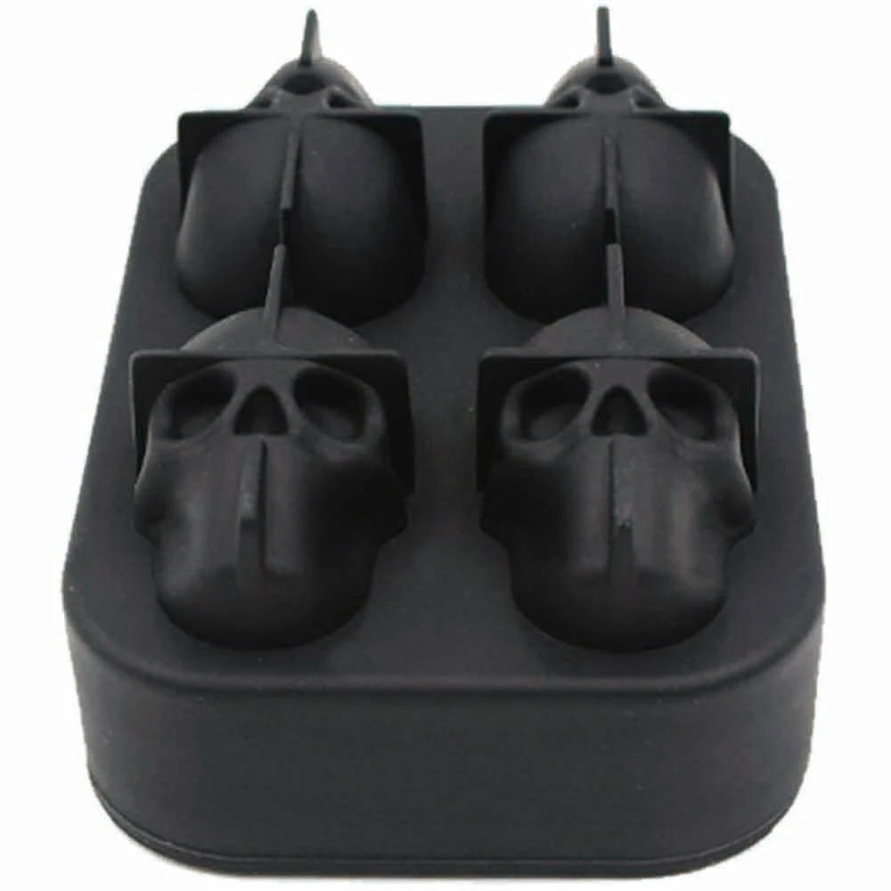 JCBROS Store 4 Grids 3D Skull Head Ice Cube Mold Halloween Skull Shaped Whisky Wine Ice Cube Tray Maker Chocolate Mould Bar Party Supplies Trending