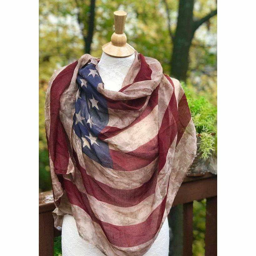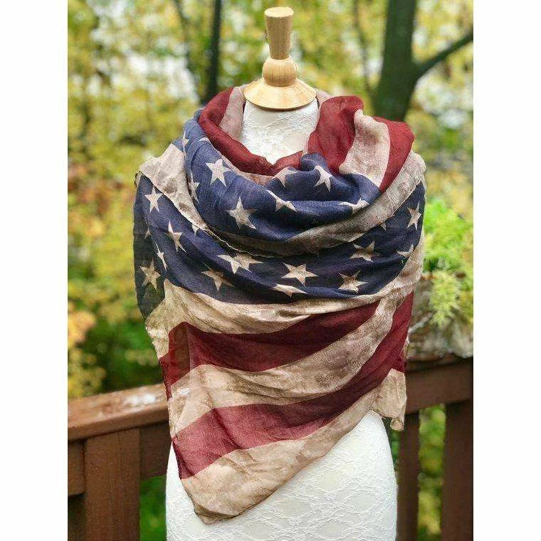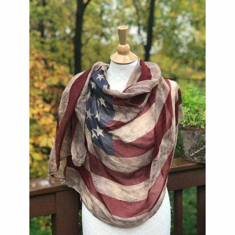 KnittingHappens Women Clothing American Flag Scarf, Vintage Flag, Aged Flag, Light Fabric Rectangular Extra Large Shawl MADE TO ORDER