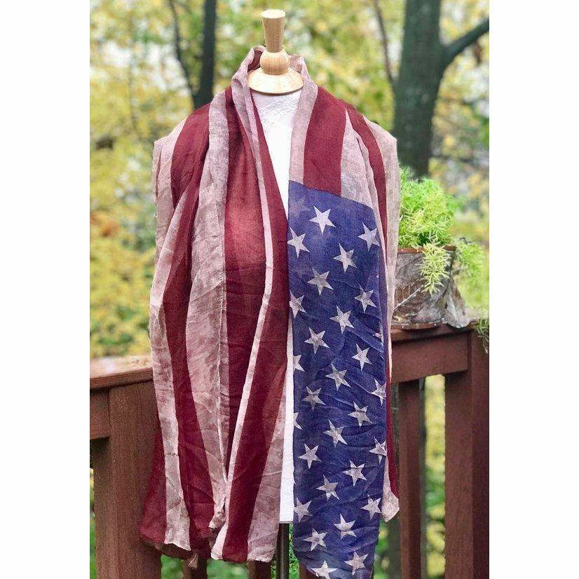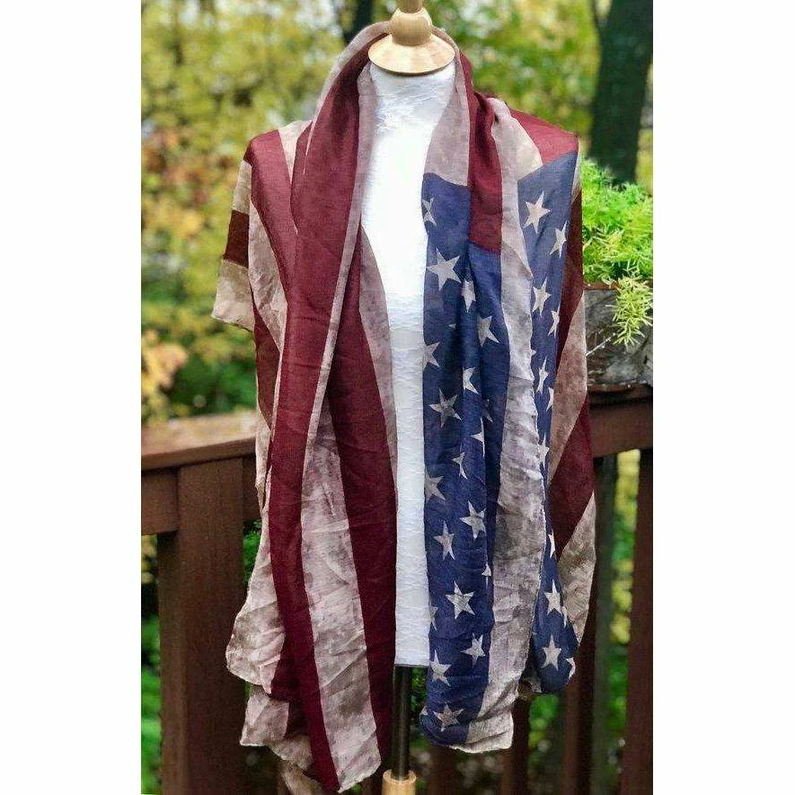 Vintage look American flag scarf shawl.