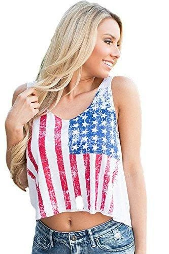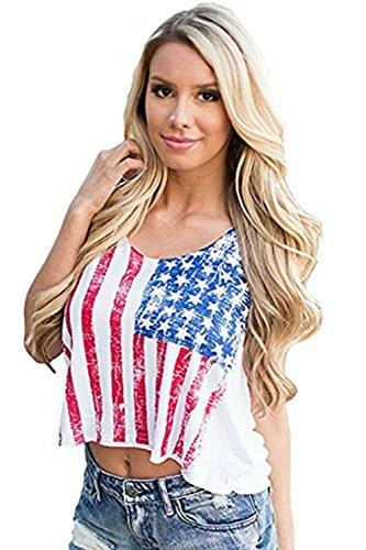 Womens American Flag Shirt Short Sleeve USA T-Shirts Tank Top Loose Vests Tops Blouse