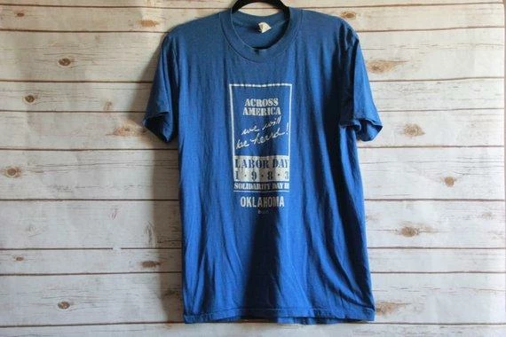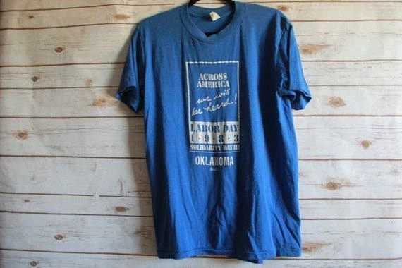 Vintage Blue Across America “We Will Be Heard” Labor Day 1983 Solidarity Day III Oklahoma T-shirt.