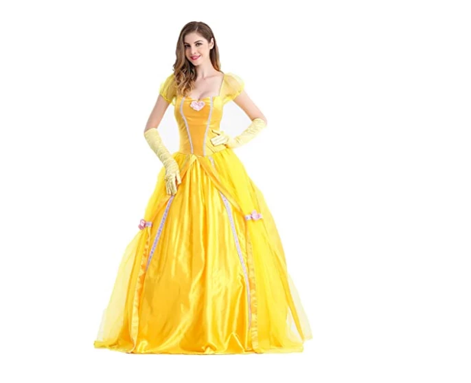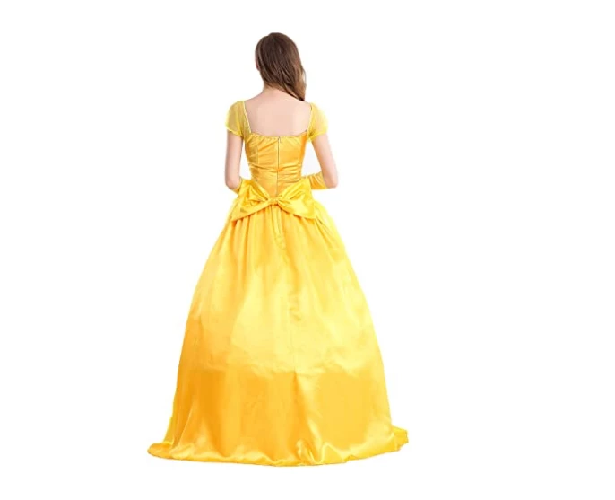 M&J Holiday Decorations Co.,Ltd Beauty And The Beast Bell Yellow Long Dress Halloween Costume Belle Princess Dress Masquerade Carnival Adult Belle Roles Suit