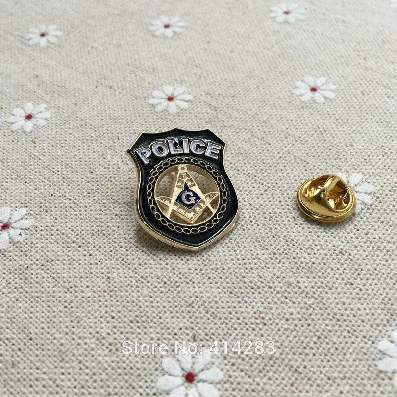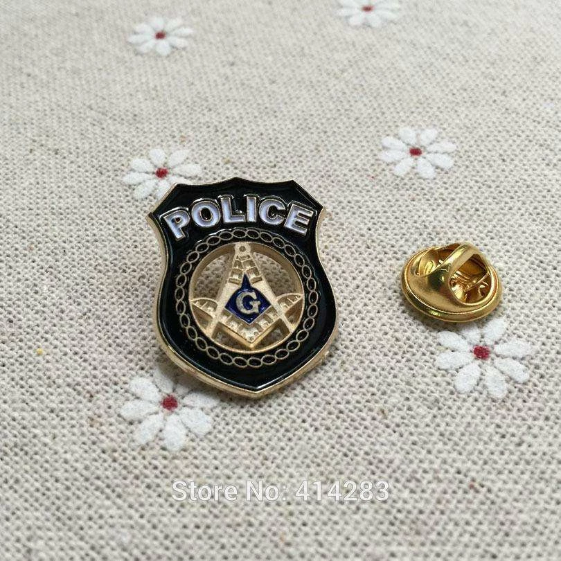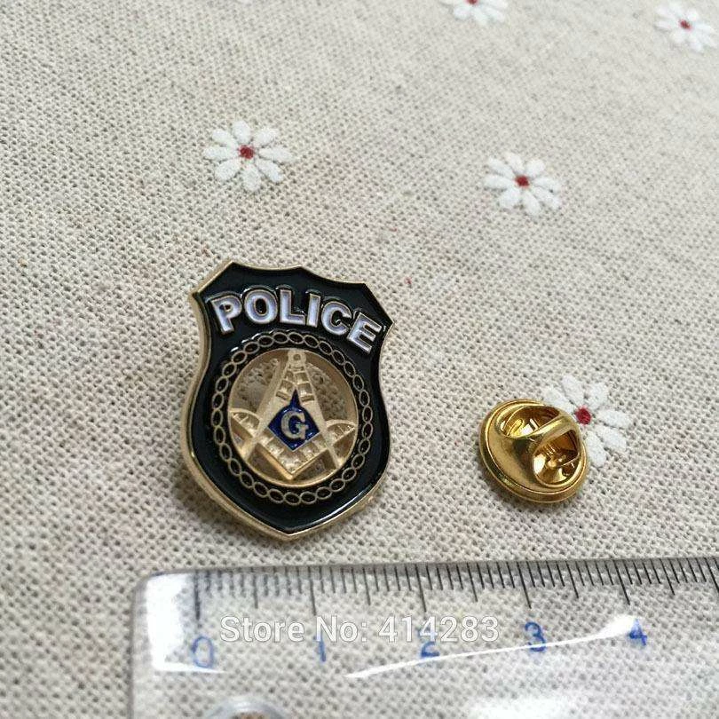 Masonic Gifts Store 1pc Masonic Lapel Pin Brooch Freemasonry Crafted In The Shape Of A Police Badge With Cutout Square And Compass Inside The Badge