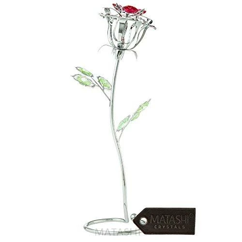 - Intricate Crystal Craftsmanship – The rose and flower stem feature beautiful leaves highlighted with green crystals, and a gorgeous bulb highlighted by red Matashi crystals. Dimensions: 2.5 x 2.5 x 8 inches