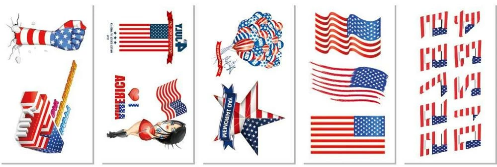Mi 3 Store 5pcs/lot American Country Flag Tattoo Stickers Independence Day 4th Of July Body Face Art Tattoo Decals For National Day Patriotic Theme Party Supplies