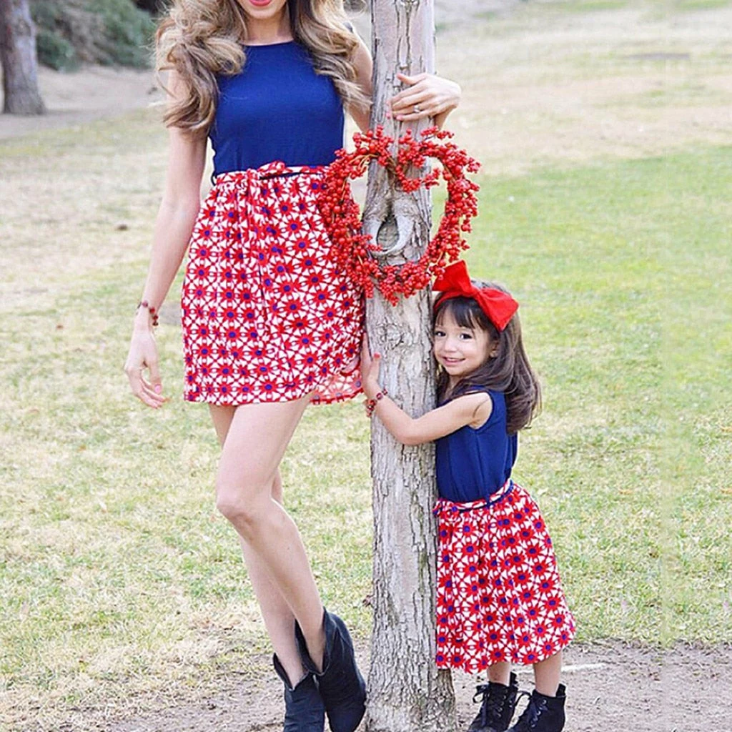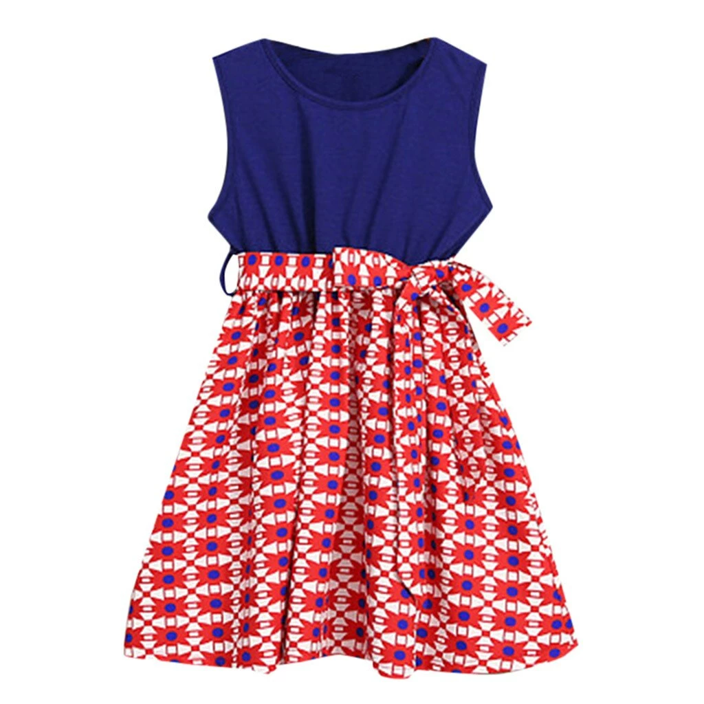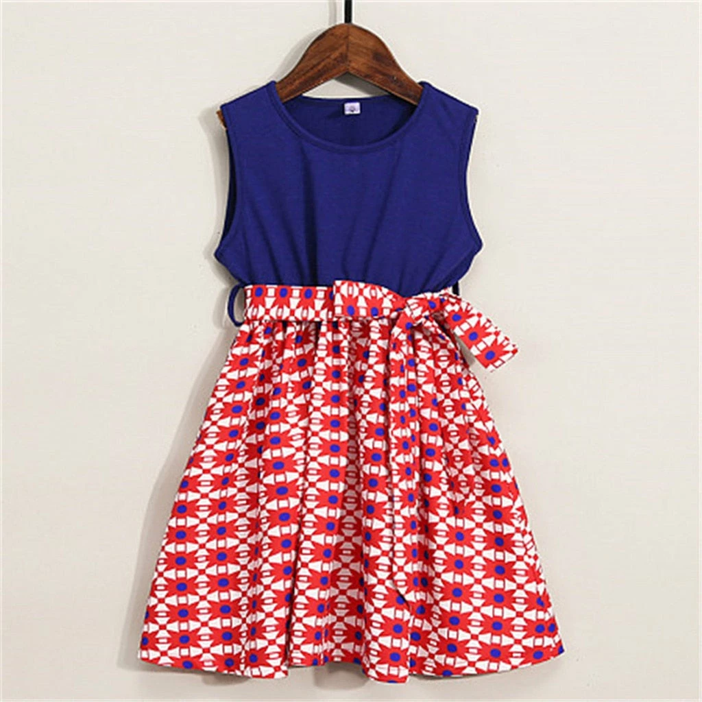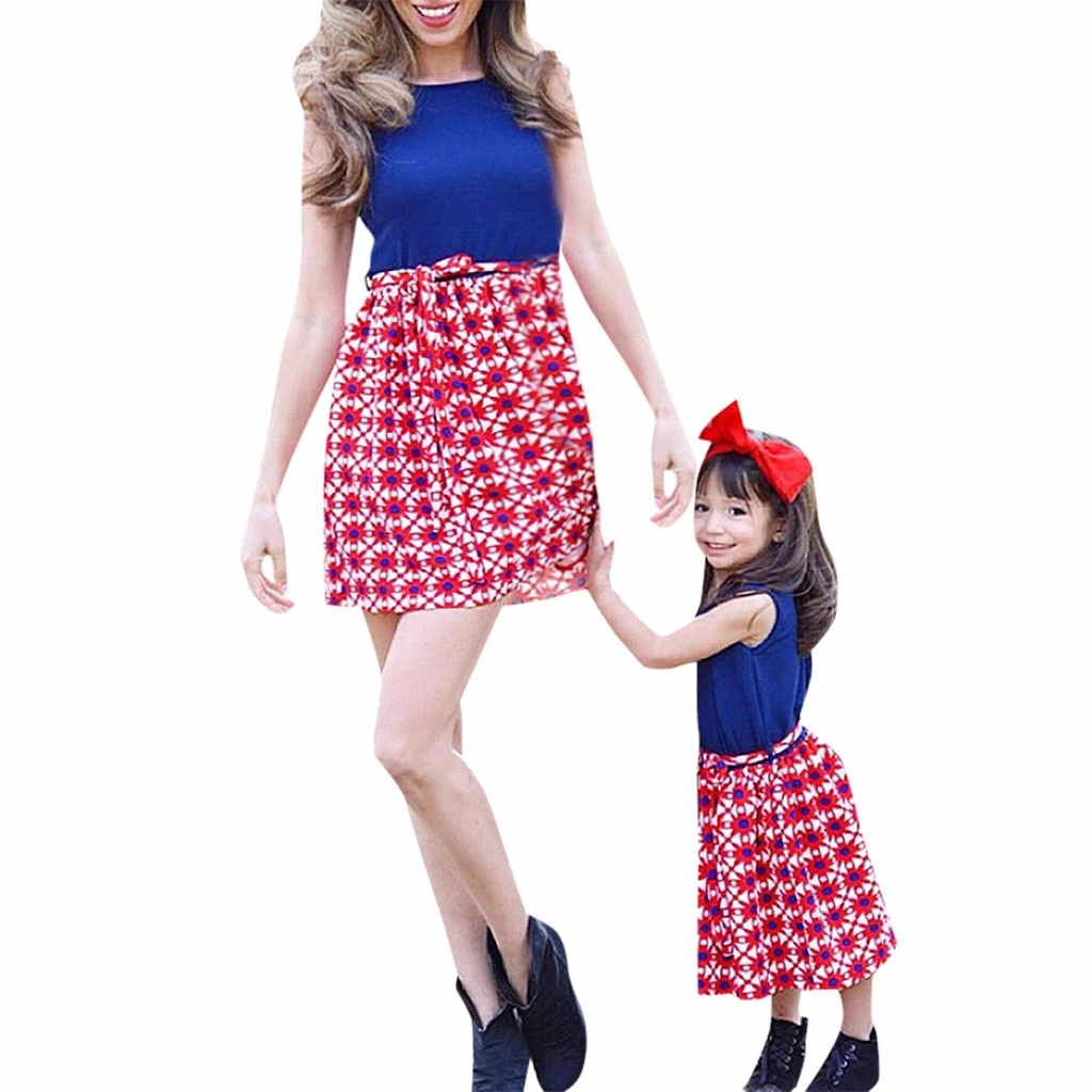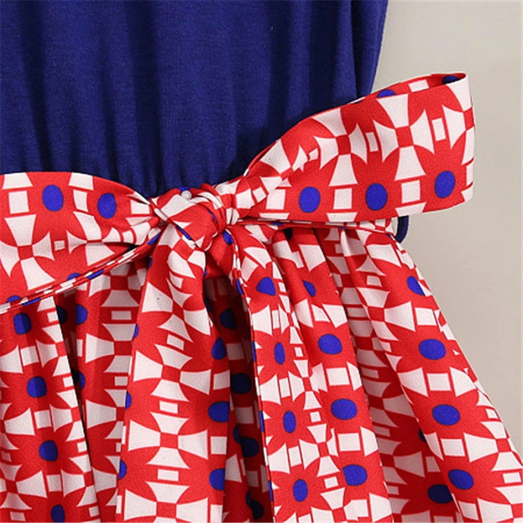 Mincemeat Store Kids Dresses For Girls Mommy&Me Baby Girl Family Summer Sleeveless Splice Dress 4th Of July Dress Casual Clothes Child Vestidos Kids Clothing