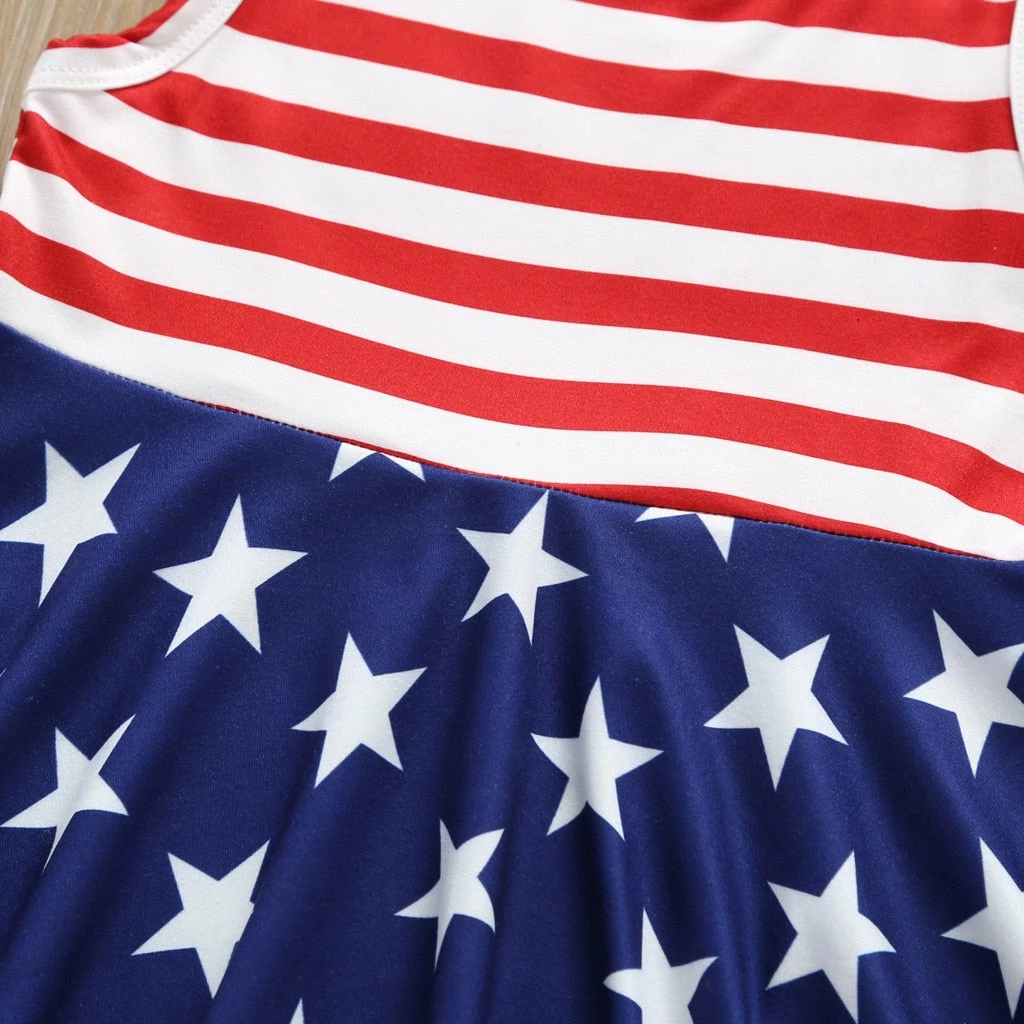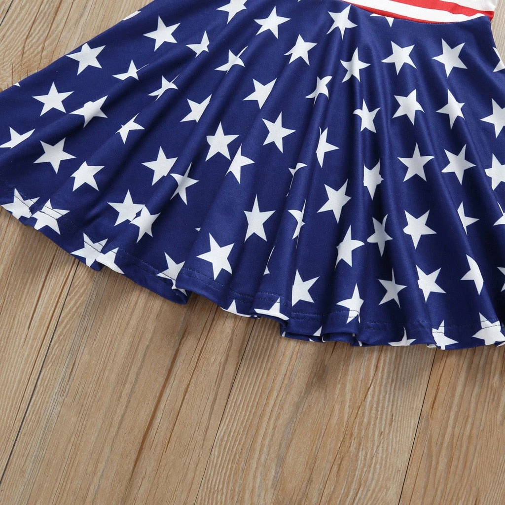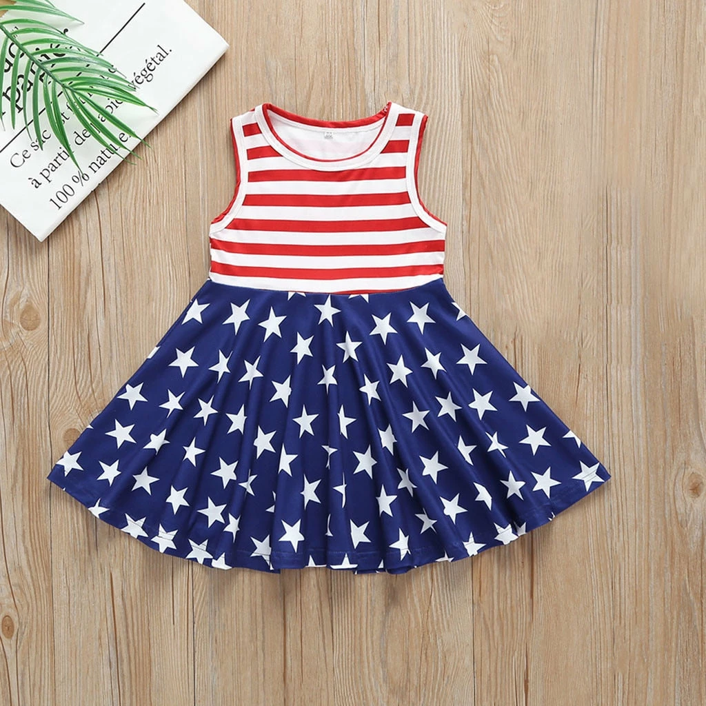 Mincemeat Store New Style Girls Dress Toddler Baby Girls Star Print 4th Of July Fashion Dress Striped Clothes Popular Costumes For Baby Dress Kids Clothing
