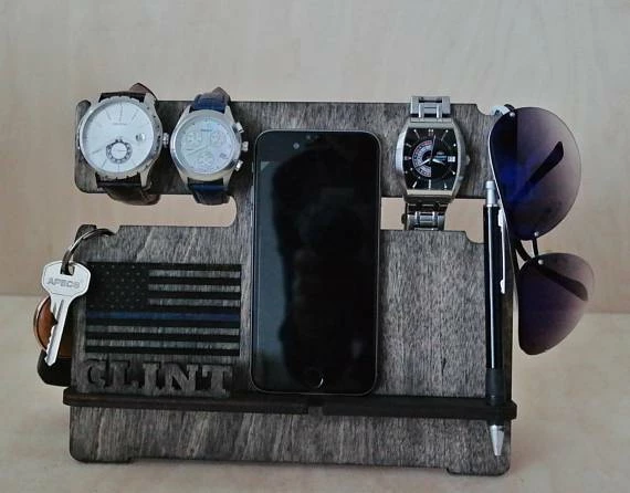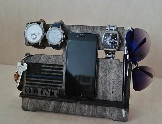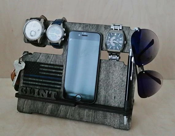 This universal wooden handmade docking station is compatible with all cell phones including any IPhone, Samsung, and android with any phone cord.