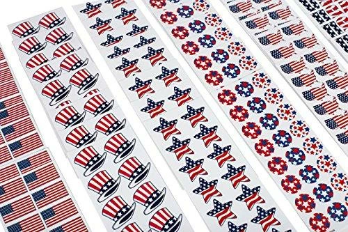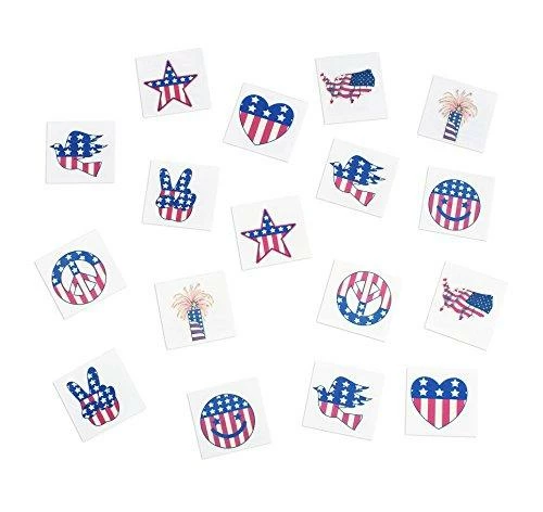 - INCLUDES: 72 Patriotic Tattoos with American Flag Designs, 24 Assorted Fourth of July Theme Sticker Sheets.