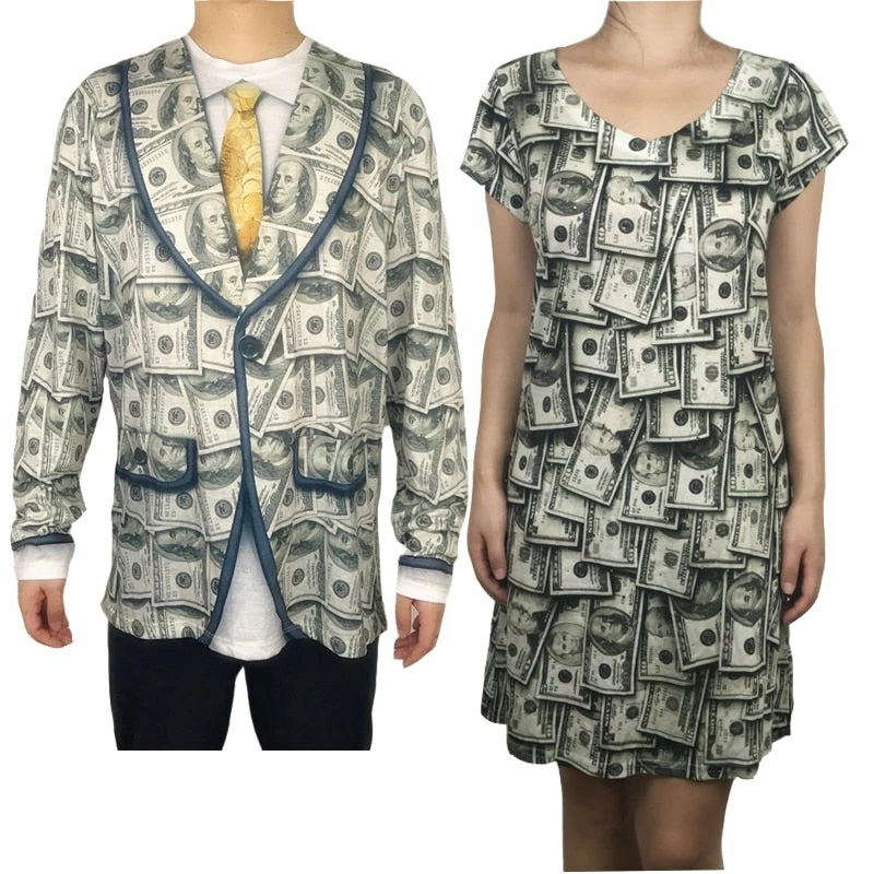 OBVSBUYS Store Couple Halloween Costume Funny Dollar Printed Matching Halloween Costumes For Partner Cute Couples Halloween Costumes Cash Printed Costume Plus Size