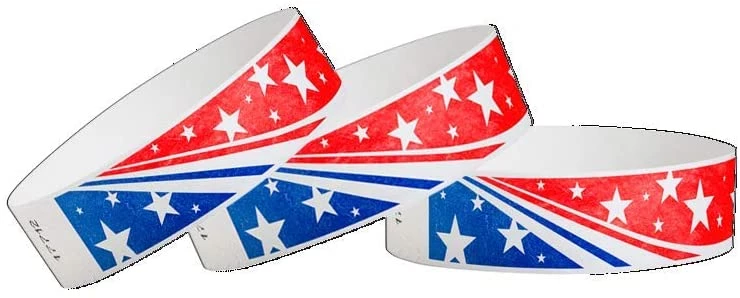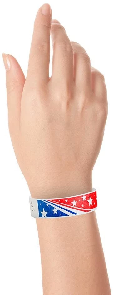 - 200 STAR STREAM 3/4 INCH TYVEK WRISTBANDS FROM WRISTCO – The heavy duty 7.5 mil Tyvek wristbands with the strongest adhesive of any wristband are packaged in sheets of ten. Each wristband measures 3/4″ wide by 10″ long and will fit most wrists. These wristbands are ideal for short term use, including concerts, sporting events, festivals and health screening. Make safety visible with a brightly colored wristband to screen employees and patrons or promote vaccination efforts.