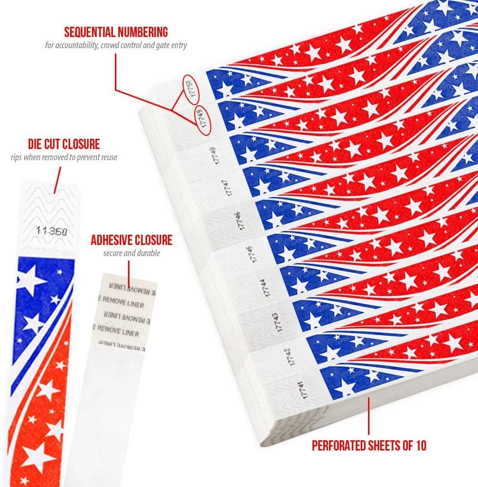 - SECURITY YOU CAN TRUST – Each WristCo Tyvek Wristband uses a waterproof, tamper-resistant die-cut adhesive closure. These tactically placed cuts prohibit the band from being removed without breaking or showing clear signs of tampering. If a visitor attempts to transfer the wristband, the adhesive will tear in a way that prevents re-use. Each wristband is numbered for added accountability and security.