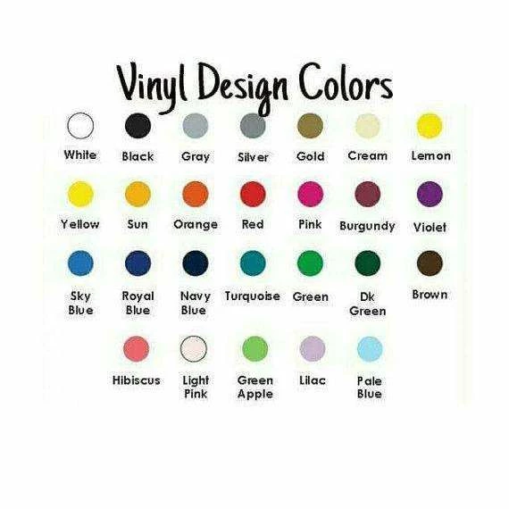 Colors CAN be modified; I’ve included a photo of the standard vinyl color options above. This can be fashioned into a baby bodysuit, a toddler shirt, or a young person’s shirt. Standard shirts will be used for sizes 6-12 months and 12-18 months. Tank tops and ordinary shirts are available in sizes 18 months and up.