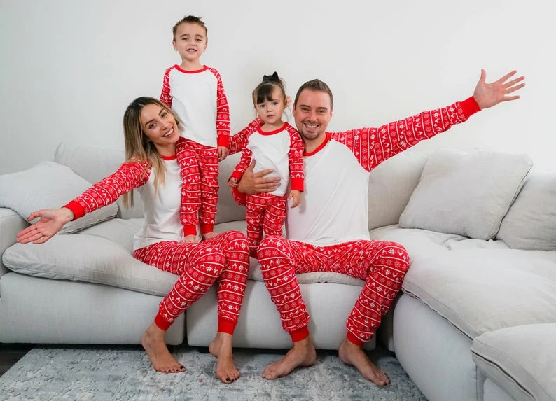 By wearing these pajamas everyone will be toasty warm and comfortable on Christmas morning. Thanks to these pajamas! The matching family style makes for beautiful photos.