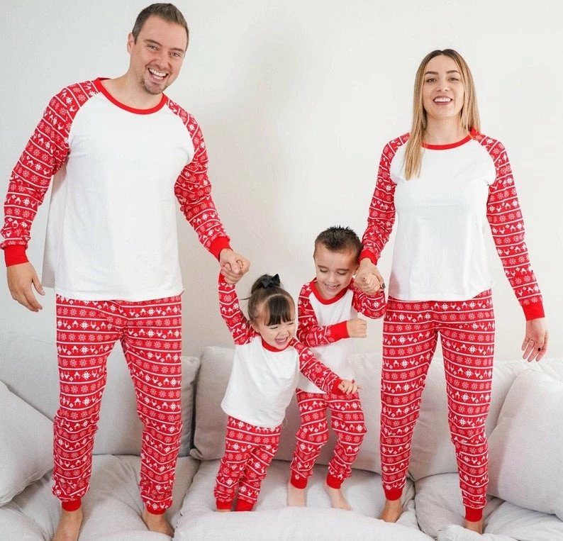 Our product is Christmas Retro Family Matching Clothes. In this product you can an amazing combination of clothes which is of red and grey colour combination of t-shirt with a multi colour pajama set.