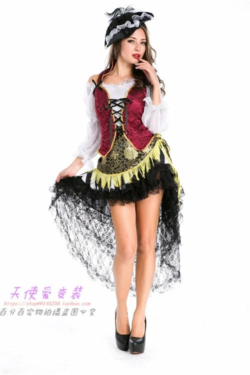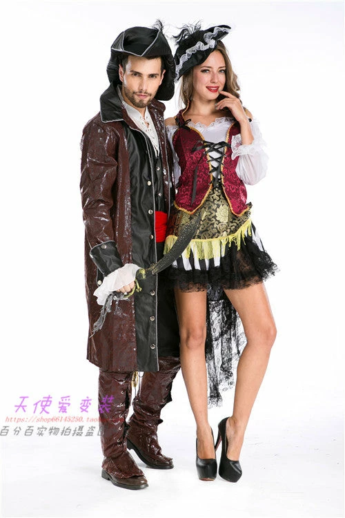 Online American Store Couple Halloween Costume Halloween Disney Couples Men And Women With The Pirates Of The Caribbean Latin Dance Skirt Installed COSPLAY Costume
