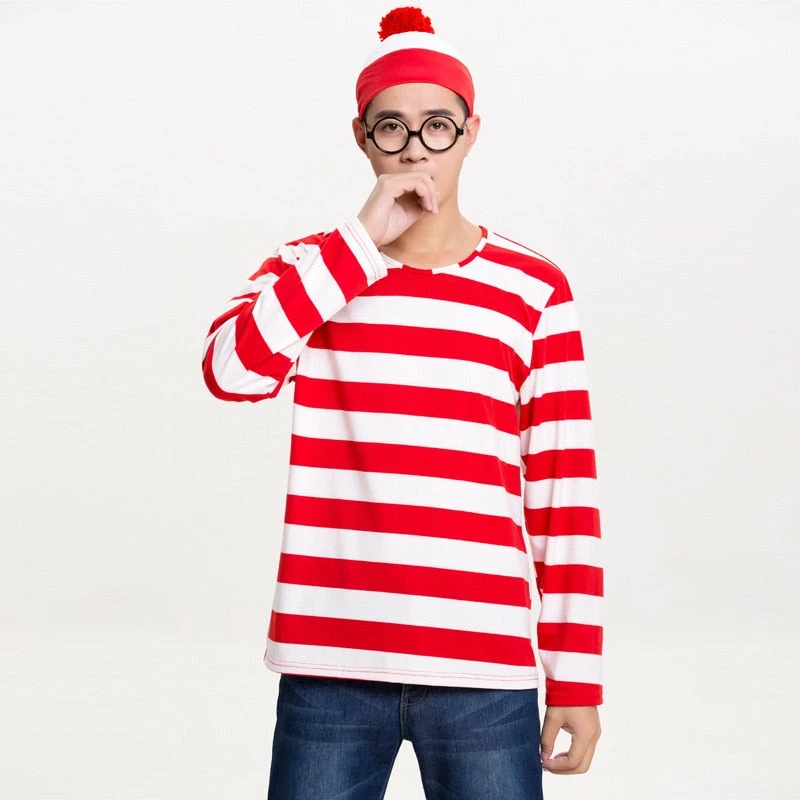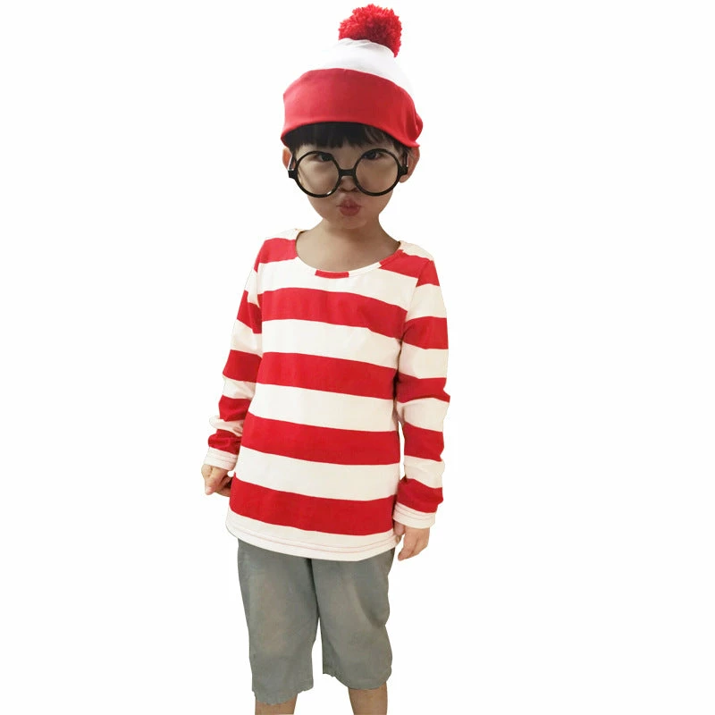 Online American Store Family Where’s Wally Costume For Man Woman Kid Couples Halloween Christmas Party Cosplay Size S M L XL XXL