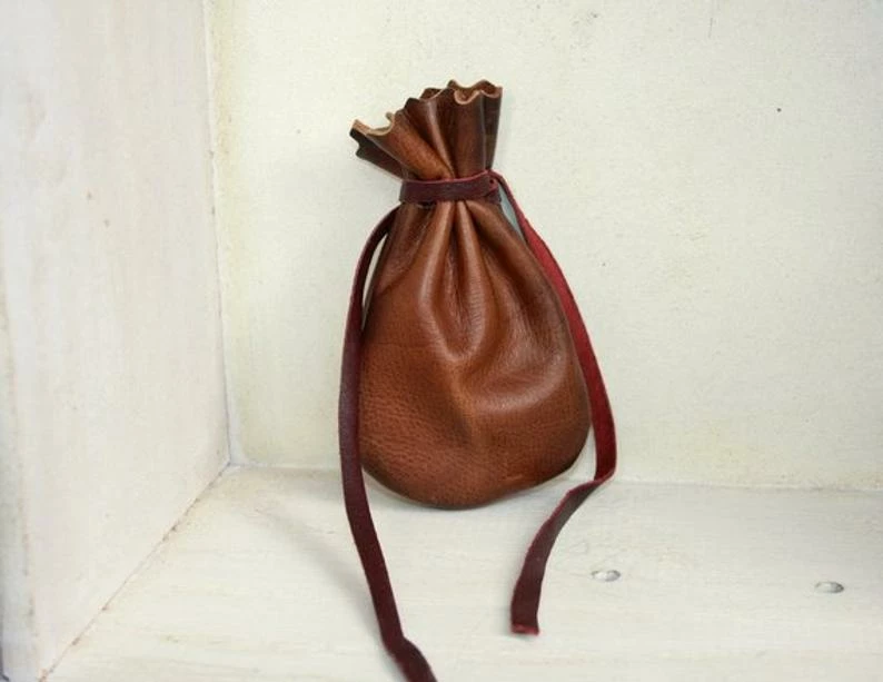 This unique leather bag can be used for just about anything. It will protect jewelry, keepsakes, change, or any other item you could imagine yourself placing in it!