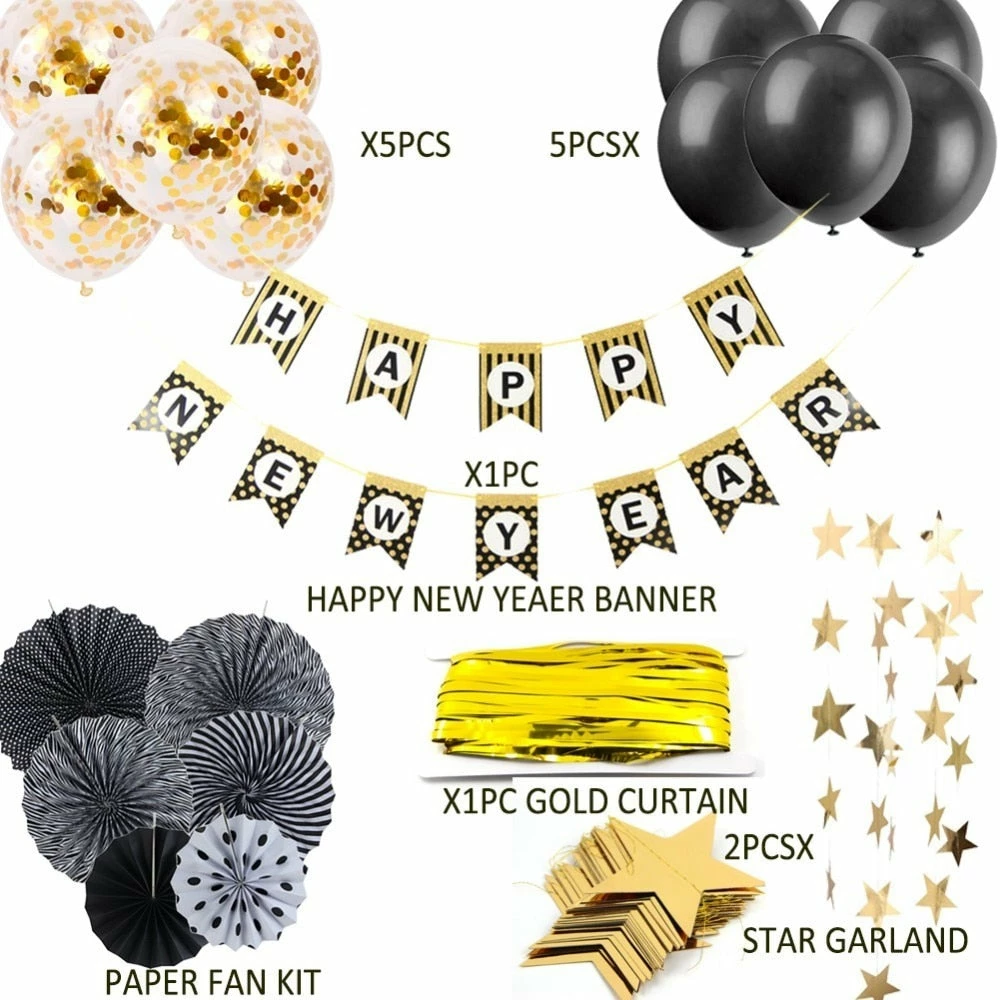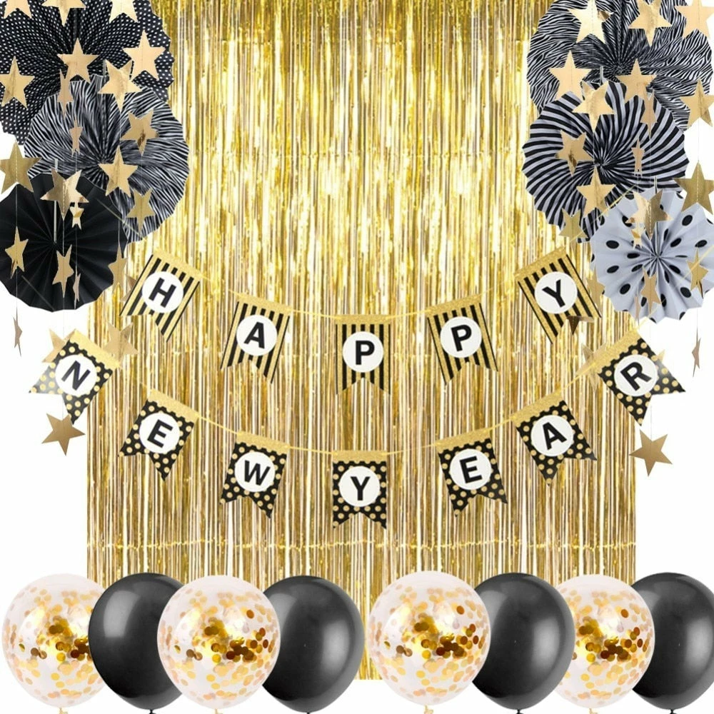 Online American Store New Year Collection 2019 New Year Decoration Pack Of 16pc With Foil Curtail Hanging Star Garlands Happy New Year Banner For New Years Eve Decoration