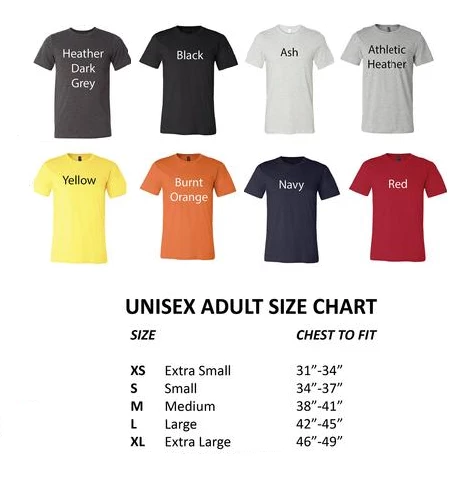 | Size | Unisex XS, Unisex S, Unisex M, Unisex L, Unisex XL, Youth S, Youth M, Youth L, Youth XL, Toddler 2T, Toddler 3T, Toddler 4T |