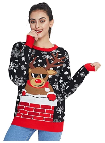 Online American Store Winter Christmas Sweater Men Women Warm Printed Knitted Jumper Top Couple Lovers Xmas Pullover Casual Loose Ladies Male Sweaters