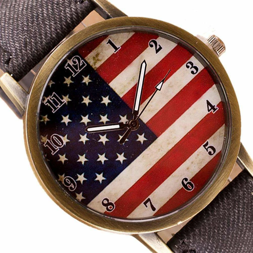 American Flag pattern Leather Band Analog Quartz Vogue Wrist Watches