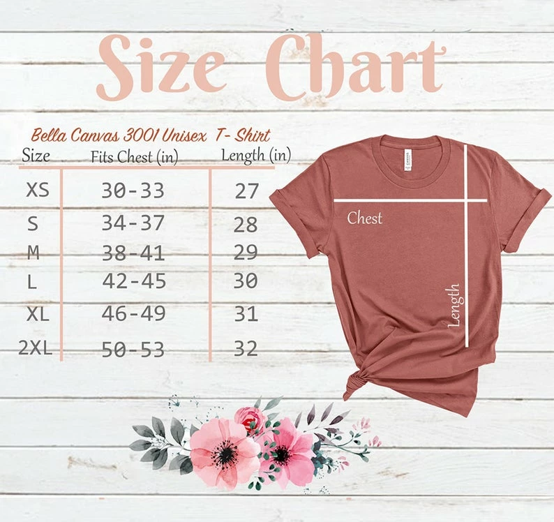 Unisex T-shirt Size Chart