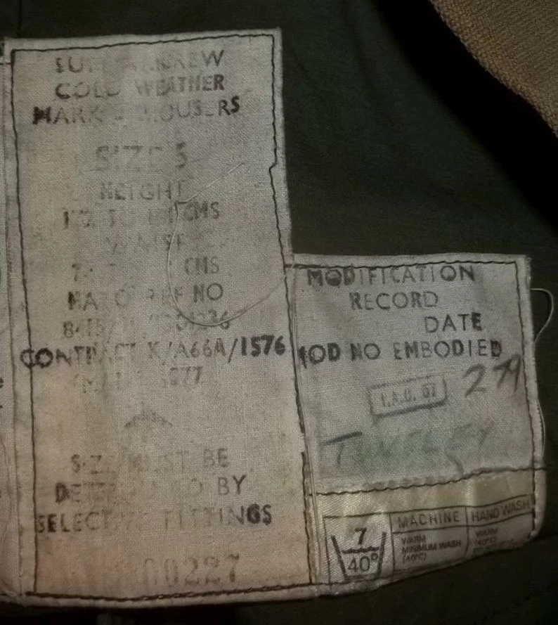 Marked size is UK military 5, approx US medium. Measured waist is in fact 36″, inseam 30 1/2″.