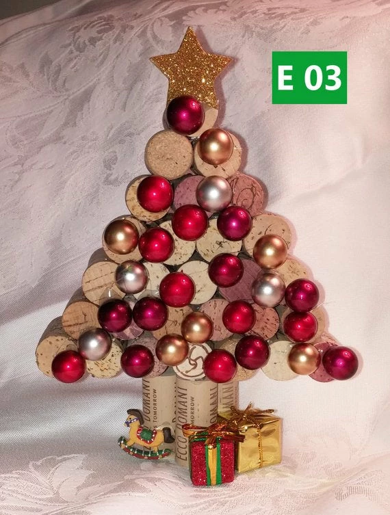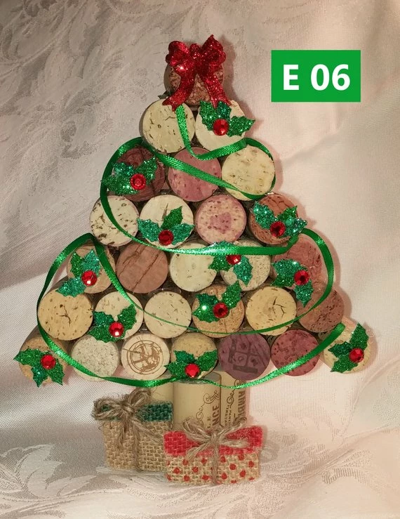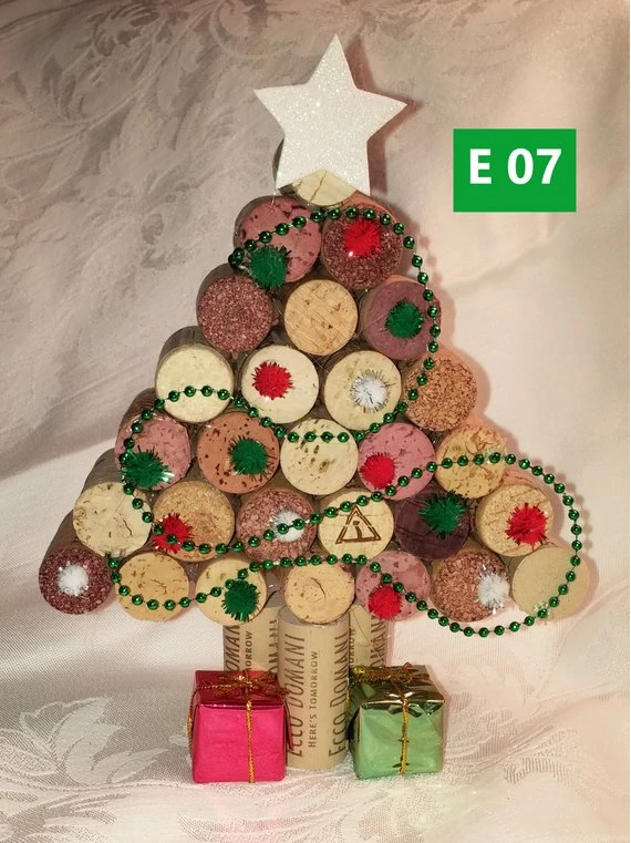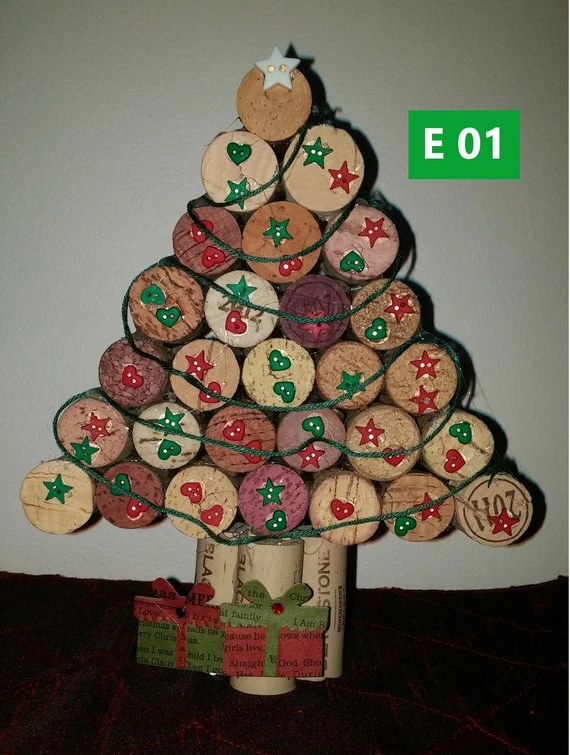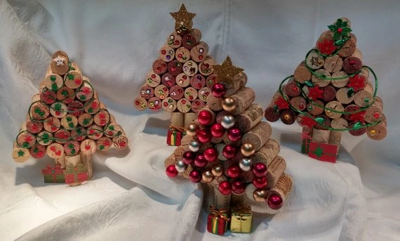 These are adorable Cork Christmas trees, each one is unique and cheerfully decorated.