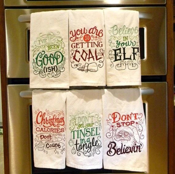 Christmas Kitchen Décor – Cotton towels with cute sayings