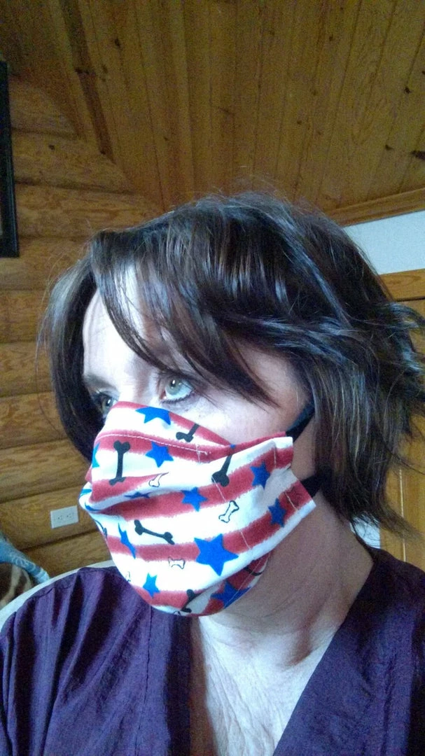 ***Last pic is for the purpose of illustrating fit of mask on adult person – may be a different pattern or print than posted mask for sale. Mask comes in one size only and fits most adults, male or female.***