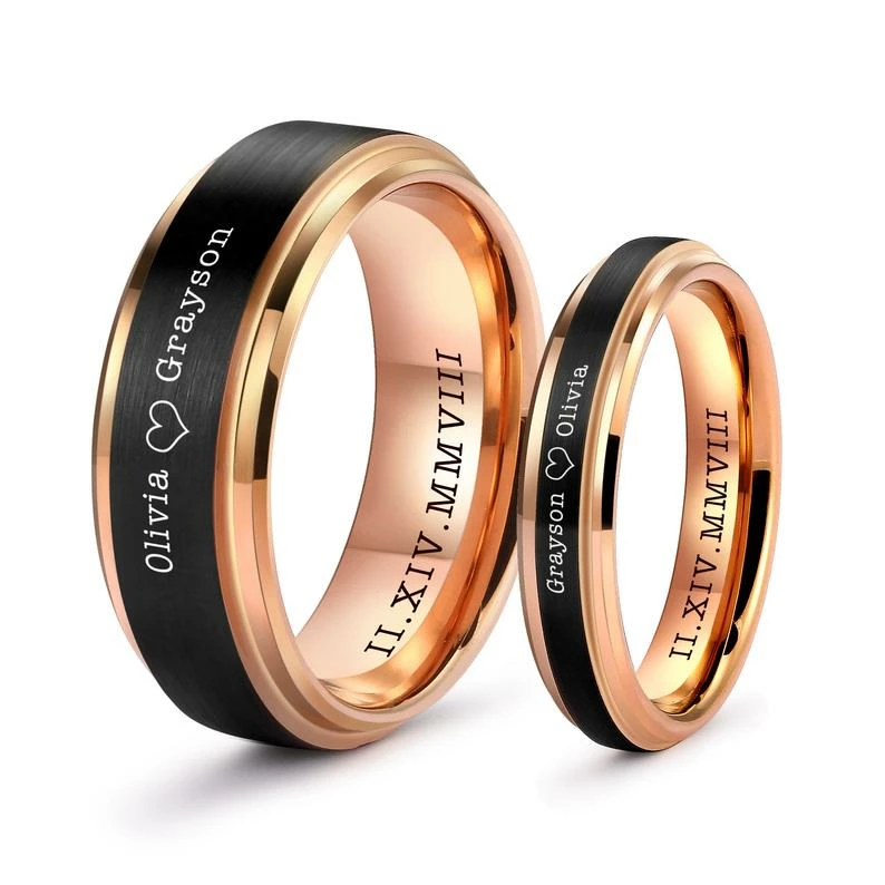 Onlineamericanstore Custom Name Accessories Custom Engraved Couple Rings, Tungsten Carbide Black Band With Rose Gold Stepped, His And Her Anniversary Gift, Gift Wrapped